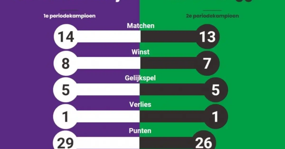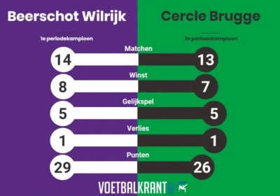 Beide ploegen zijn deze week op stage (B-W in Spanje, Cercle in De Panne), maar er staat zondag nog een laatste speeldag op het programma. En opvallend genoeg: als Cercle in het Jan Breydelstadion wint van Westerlo, leggen de finalisten een identiek rapport voor in hun winnende periode. Acht keer gewonnen, vijf keer gelijk en één keer verloren.