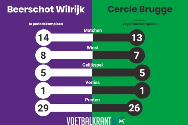 Op basis van de vorm in de laatste weken lijkt Cercle Brugge de favoriet, maar vergeet niet dat de rollen in de eerste periode omgekeerd waren. Beerschot Wilrijk leek toen nog onverslaanbaar en verloor maar één keer op veertien wedstrijden. Wel tegen... Cercle (0-3).