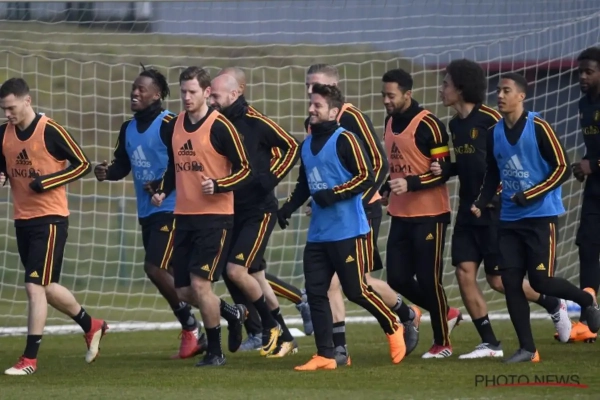 Het ging er vrijdag en zaterdag pittig aan toe op training, dus mocht er zondag wat kalmer getraind worden bij de Rode Duivels. Opvallend tijdens het kwartiertje dat we mochten zien: er droegen drie spelers een aanvoerdersband.