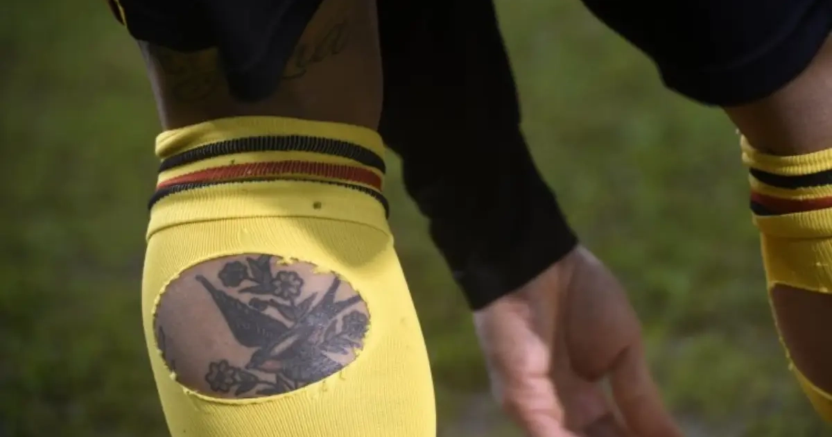 Hij speelde trouwens met wel bijzonder rare kousen, waarin hij twee gaten had gemaakt... Om zijn tatoeages te laten zien of toch voor een andere reden?