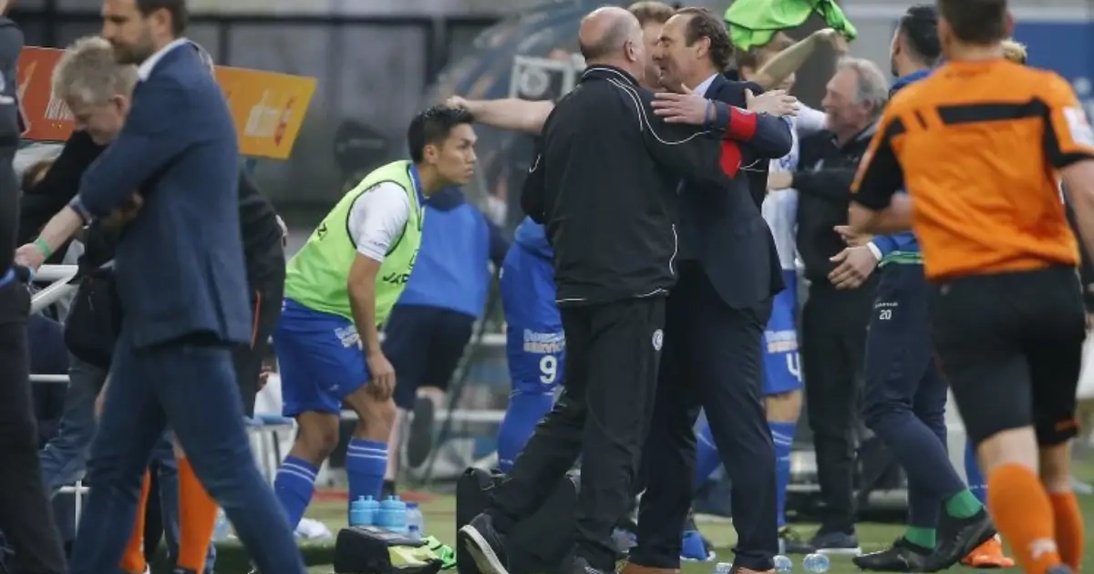 Eerst Anderlecht in eigen huis vloeren en dan voor eigen publiek Club Brugge aftroeven. Een trainer zou voor minder staan glunderen. Yves Vanderhaeghe stak zijn tevredenheid na afloop van de gewonnen 'Slag om Vlaanderen' niet onder stoelen of banken, maar wijkt wel niet af van zijn verhaal.