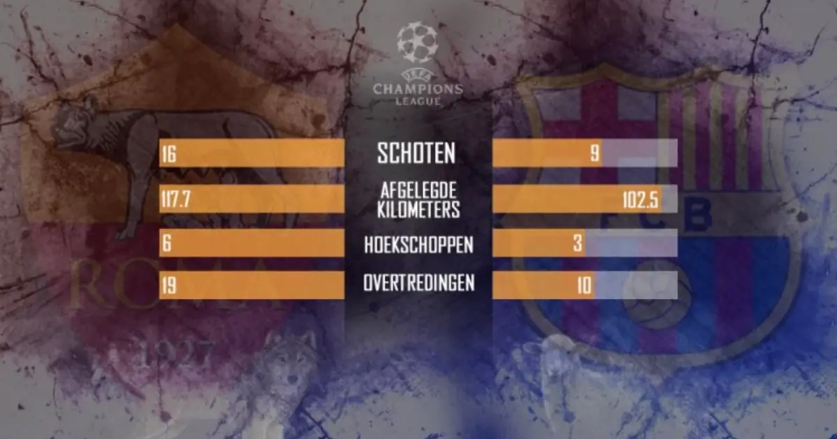 Ook in de hoekschoppen zit een groot verschil, zes voor Roma tegen amper drie voor Barcelona. De opvallendste statistiek is echter die van de overtredingen. Roma legde er duidelijk meer de kop voor met negentien begane overtredingen tegen tien. De volgende keer toch maar ene Thomas Vermaelen op het veld zetten?