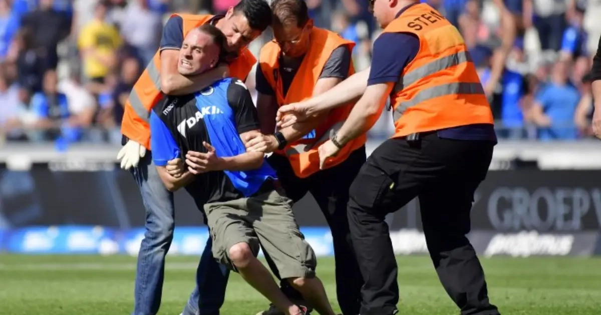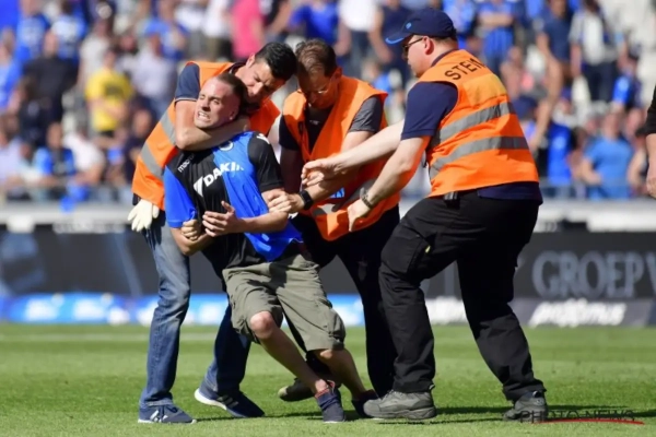Na de wedstrijd Club Brugge-Anderlecht rende er één 'supporter' van blauw-zwart het veld op. Hij wou verhaal gaan halen bij scheidsrechter Lawrence Visser en moest hardhandig verwijderd worden.