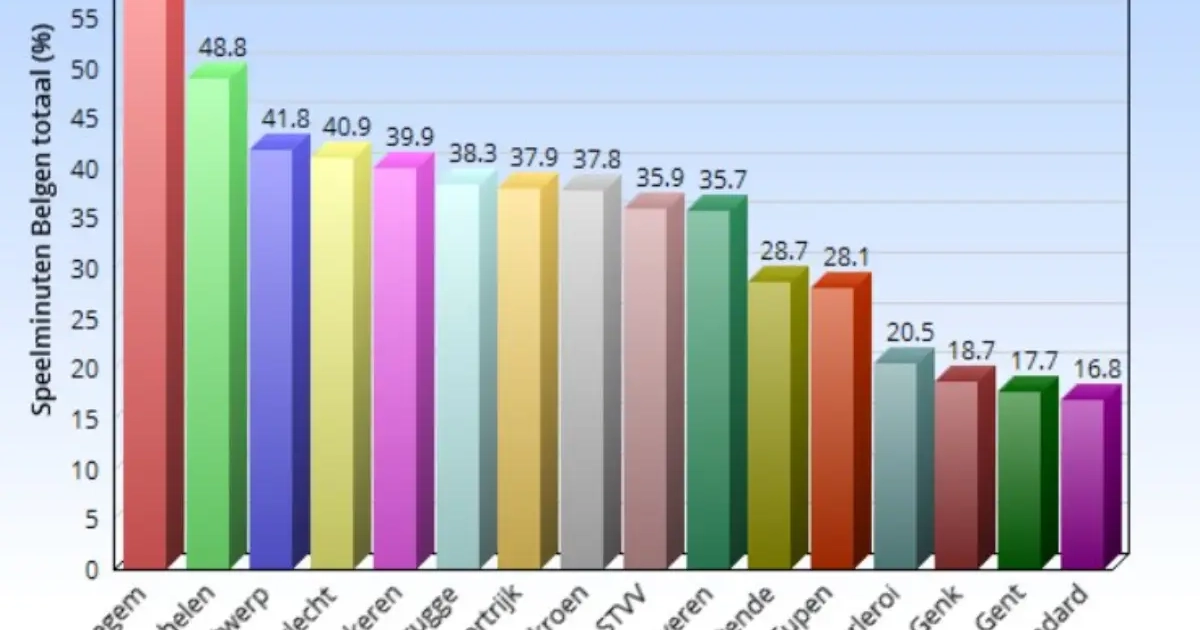 Steeds minder Belgen krijgen volop hun kans in de Jupiler Pro League of bij de Belgische ploegen. De cijfers van de reguliere competitie dit seizoen waren droef, in de play-offs werd het niet veel beter. Nochtans geeft de Pro League een ferme bonus aan de top-5. Wie zijn dat?