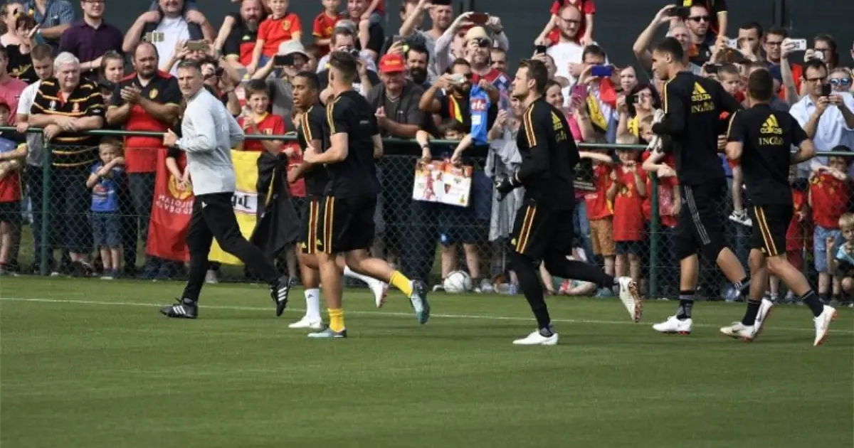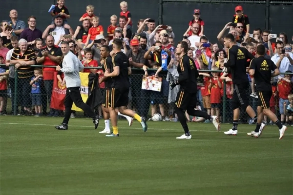 1.600 fans, zoveel mochten er binnen om veiligheidsredenen, maar er stonden er nog honderden buiten te wachten. Velen met kinderen. Die toonden eerst nog geduld, maar toen de training al 45 minuten bezig was, begonnen ze naar voor te dringen. Op een gegeven moment kon de security de toevloed aan mensen niet meer houden en die probeerden zich een weg naar het veld te banen. Voor het oefenveld was er echter nog een poort die afgesloten kon worden.