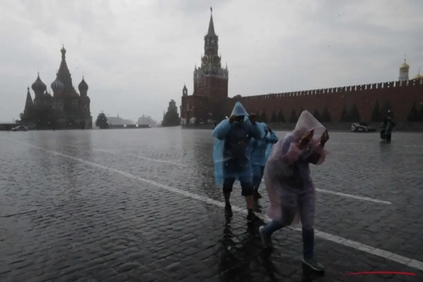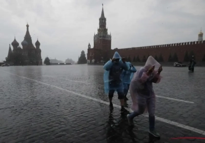 Er is gisteren een enorme storm uitgebroken boven Rusland. Het water viel met bakken tegelijk naar beneden. Dat heeft de reisplannen van heel wat fans letterlijk in het water doen vallen.