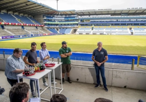 En dat is niet alles: daarnaast wordt het kunstgras rond het terrein eveneens vernieuwd en in een blauw jasje gestoken inclusief het clublogo in een witte kleur. Het gaat in totaal om een investering van 500.000 euro. En die zal ook renderen: "De komende seizoenen kunnen we een heel jaar lang, ook in play-off 1 op een uitstekend veld aantreden", stelt stadiondirecteur Kobe Schepers.
