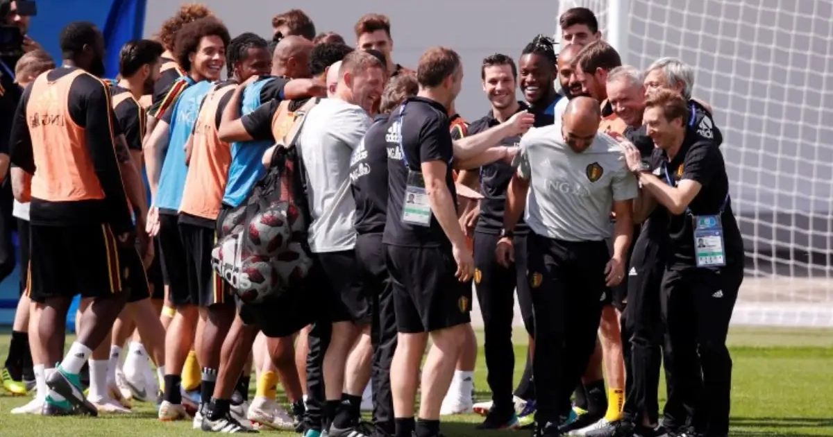 Roberto Martinez werd vandaag 45 jaar oud. De bondscoach werd door zijn spelers gefeliciteerd en moest - net als iedereen - door een tunnel lopen en klappen incasseren. "Maar we zijn uiteraard voorzichtig geweest met de coach", lacht Axel Witsel. Maar Roberto wil nog één verjaardagscadeau.