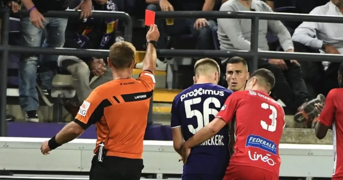 Vranjes ging met de twee voeten vooruit door op Moeskroen-spits Pierrot. Geen twijfel mogelijk: rood. In Griekenland had de Bosniër al een kwalijke reputatie en hij trekt de lijn hier door. "En dat is spijtig, want hij toonde vandaag dat hij één van de beste verdedigers van België kan worden", reageerde Vanhaezebrouck.
