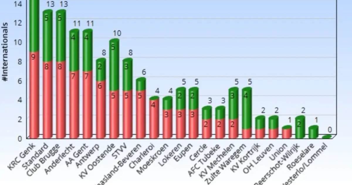 KRC Genk moet liefst 16 spelers missen, waarvan er negen ook zullen uitkomen voor de A-ploeg van hun land. Daarmee zijn zij de hofleverancier van de in totaal 138 internationals die het Belgisch profvoetbal uitsturen.