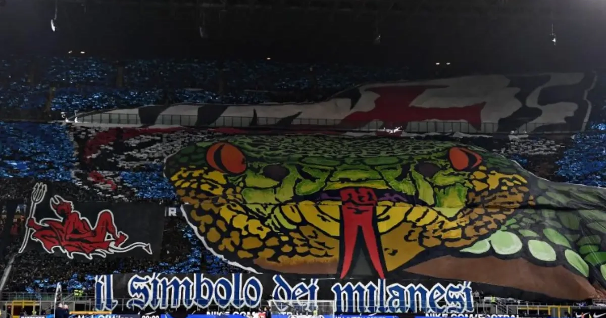 Zeker nog een vermelding waard: de tifo's achter beide doelen waren werkelijk schitterend. Bij Inter verscheen een gigantische slangenkop, aan de overkant toonden die van AC Milan twee handen die een slang in twee scheurden.