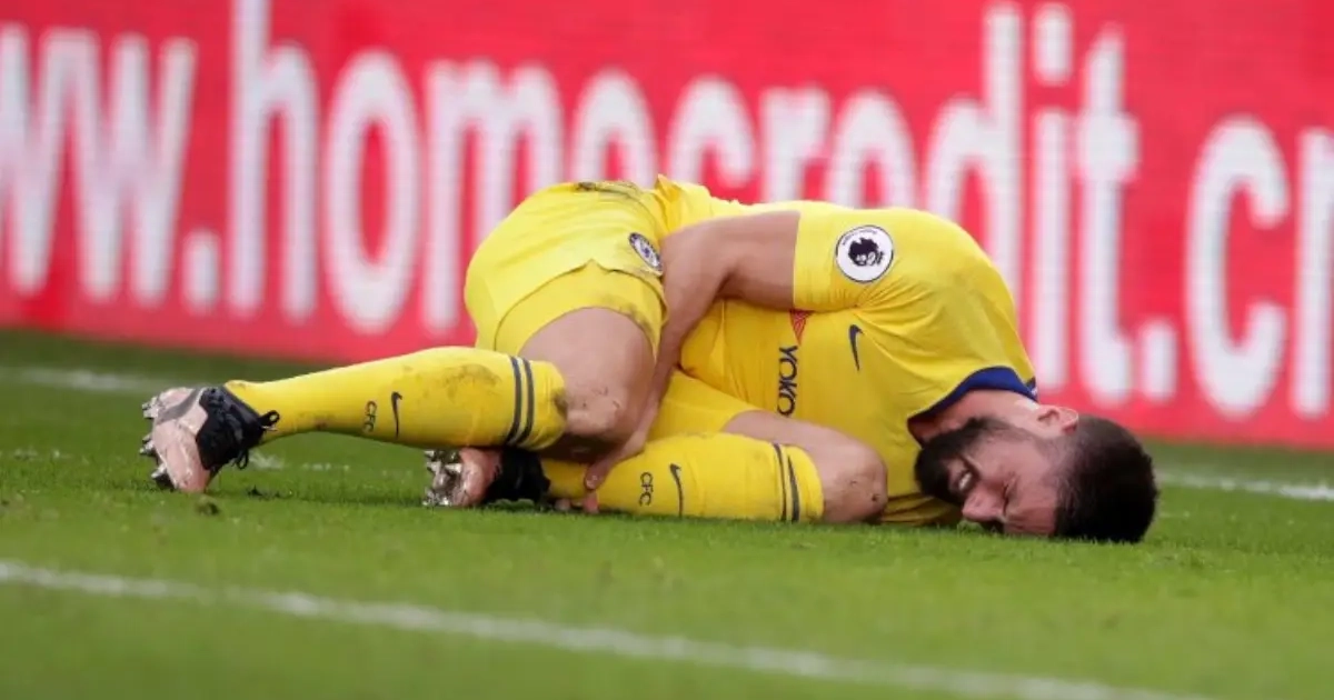 Nadat hij een ongeldig doelpunt maakte vanuit buitenspel ging Giroud neer en meteen greep hij naar zijn enkel. De Franse spits moest achteraf zelfs het stadion verlaten op krukken en met de hulp van twee kinesisten. Dat meldt L'Equipe.