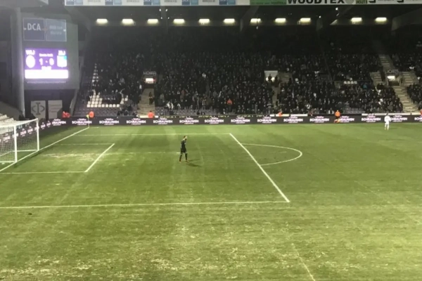 Maar het mag duidelijk zijn dat dit het voetbal niet ten goede komt. Doelman Mike Vanhamel beklaagde zich vorige week nog over de zandbak in zijn doel in Roeselare, maar dit lijkt toch nog wat erger...