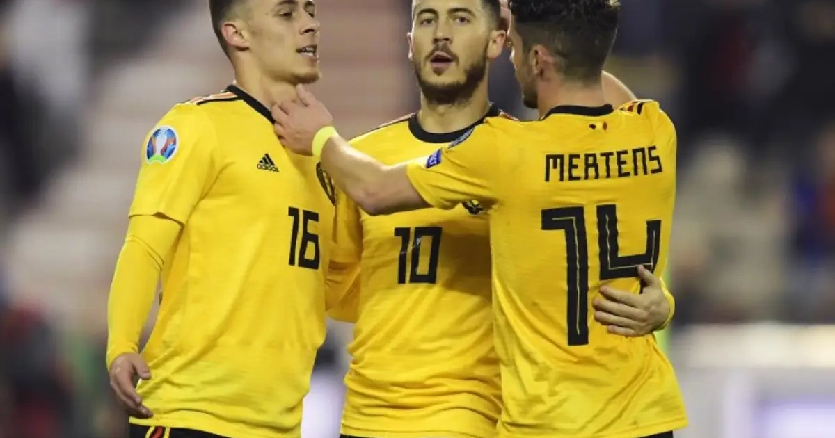 Hazard knalde gisteren van op de stip de 2-1 tegen de netten. Zijn 29e doelpunt in het shirt van de Belgen. Daarmee evenaart hij zijn ex-coach Marc Wilmots en komt hij op de vierde plaats in de duivelse topschutterstand aller tijden.