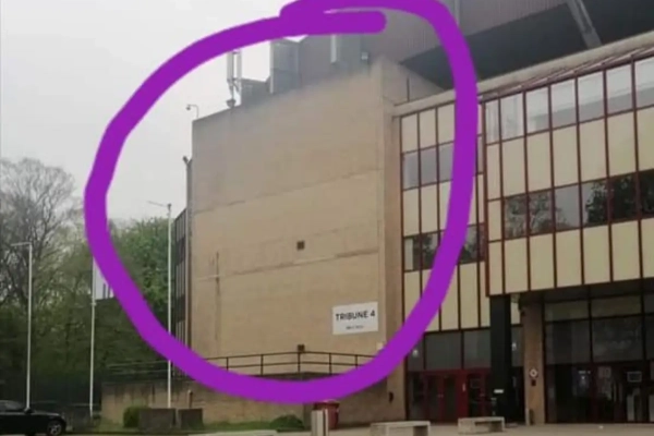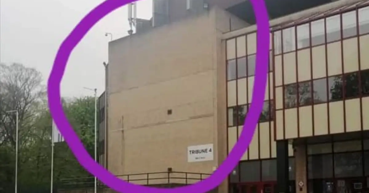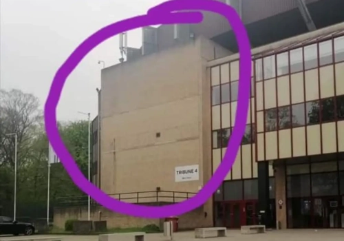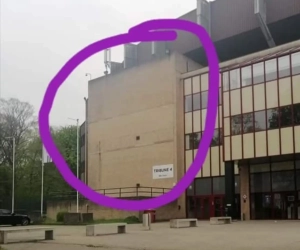 Maar dat was wat voorbarig, want het logo is er al sinds 2014 verwijderd. Na een brand aan de gevel aan de Fan Shop werd het bord nooit vervangen. Omdat er nu geen vlaggen hangen, was het de eerste keer dat het veel fans opviel.