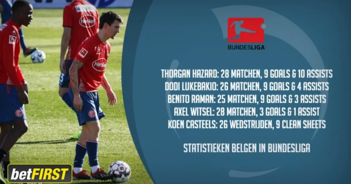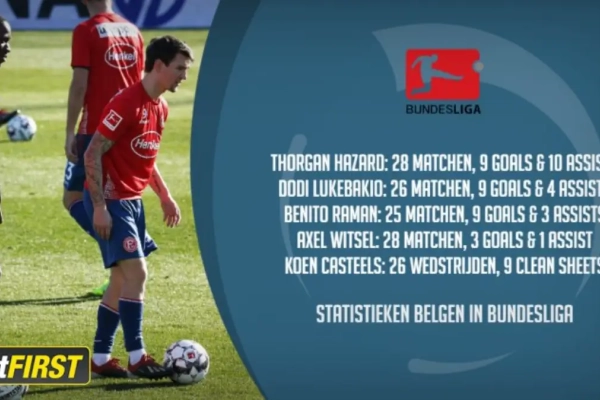 De cijfers liegen er in ieder geval niet om. De Belgen zijn - na de Duitsers, Fransen en Oostenrijkers - het meest doeltreffende land in de Bundesliga op dit moment. Hazard, Lukebakio en Raman scoorden elk al negen doelpunten, Axel Witsel dikte met drie rozen aan tot een totaal van dertig.