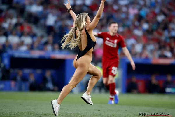 De finale van de Champions League in het Wanda Metropolitano werd in de eerste helft opgeschrikt door een bevallige verschijning. Een blondine in weinig verhullende outfit kwam het veld opgelopen. Een paar stewards gingen haar met plezier achterna...