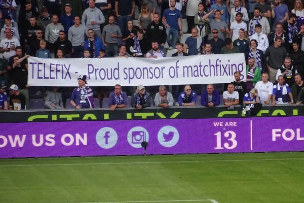 Uiteraard volgde er wel nog een subtiele uithaal naar KV Mechelen en in het bijzonder zijn hoofdsponsor. Het spandoek 'Telenet - Proud sponsor of matchfixing' werd zowel voor als tijdens de wedstrijd tegen Lokeren voortdurend in beeld gehouden. Telenet blijft KV Mechelen ook na 'Propere Handen' sponsoren, al moesten enkele betrokken figuren wel opstappen.