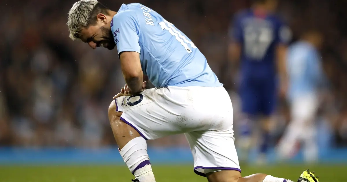 Pep Guardiola vreest voor het ergste bij Sergio Agüero. De Argentijn stapte in de 77e minuut van het veld in de 2-1-overwinning tegen Chelsea.