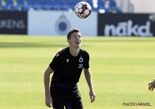 Een tiental spelers van Club Brugge waagde zich tijdens een training aan een 'bin challenge', een bal naar elkaar koppen en de laatste kopt hem in een vuilnisbak. Onder meer Vossen, Cools en Rits maakten deel uit van de challenge.