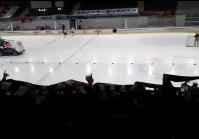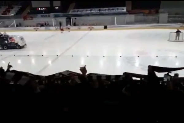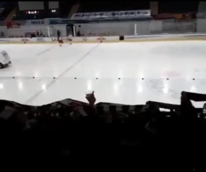 De bezoekende fans lieten het niet aan hun hart komen en gingen dan maar massaal naar een ijshockeywedstrijd kijken, waar ze voor de nodige sfeer zorgden. Dat leverde heerlijke beelden op.