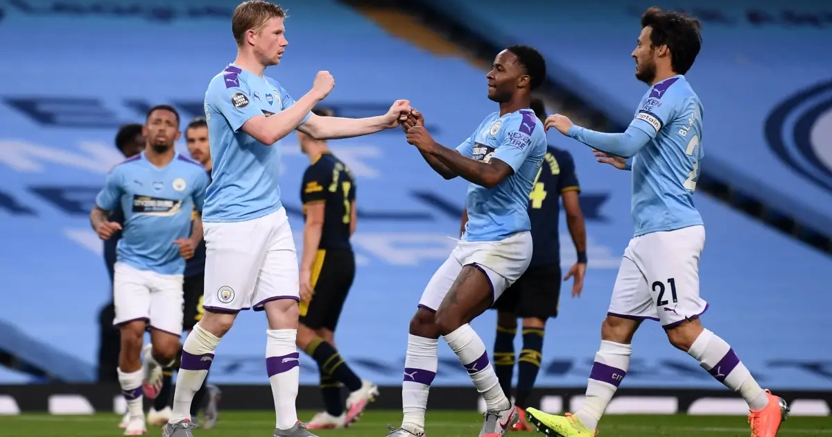 Ook in Engeland voetballen ze opnieuw en met Man City - Arsenal stond er meteen een fraaie affiche op het menu. Al was er van spanning bijzonder weinig sprake. Arsenal heeft immers geen Kevin De Bruyne. Die was na zeventig minuten helemaal klaar met zijn werk.