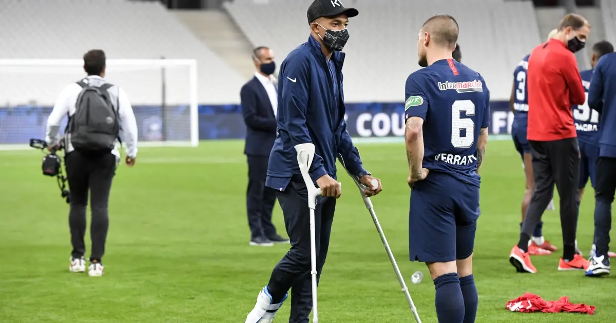 In de Franse bekerfinale werd Kylian Mbappé van het veld geschopt en na de met - gewonnen wedstrijd moest hij zelfs met behulp van krukken het stadion verlaten. Gelukkig voor de Fransman lijkt de blessure mee te vallen.