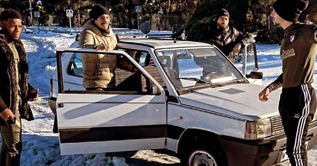 De buurman van Carrasco had nog een oude Fiat Panda staan en dus maakten ze van de nood een deugd. Samen met ploegmaats Thomas Lemar en Sime Vrsaljko maakten ze er een hele belevenis van.