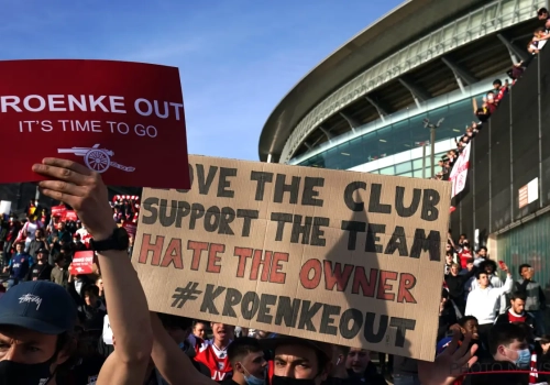 Dat wil daarom nog niet zeggen dat de rust is teruggekeerd. Voor aanvang van de thuiswedstrijd tegen Everton van vrijdagavond daagden Arsenal-supporters massaal op aan het Emirates Stadium om nogmaals hun beklag te doen. Eigenaar Stan Kroenke heeft het door zijn betrokkenheid bij de Super League bij hen verkorven. Ze eisen zijn onmiddellijk vertrek.