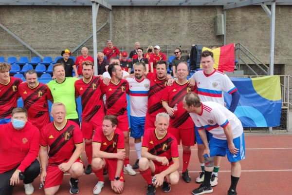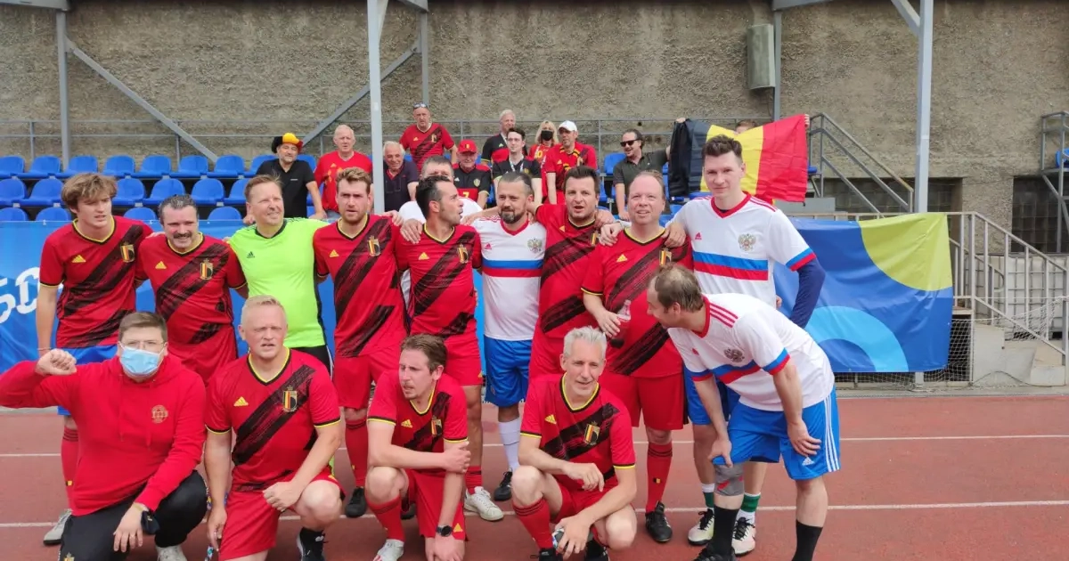 Na de match verbroederden ze met de Russische spelers.