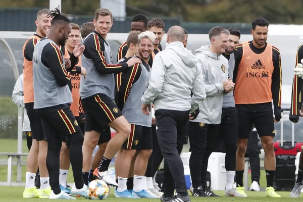Door de coronacrisis werken de Rode Duivels het EK af vanuit het trainingscomplex in Tubeke. Normaal mogen ze hun familie niet zien.