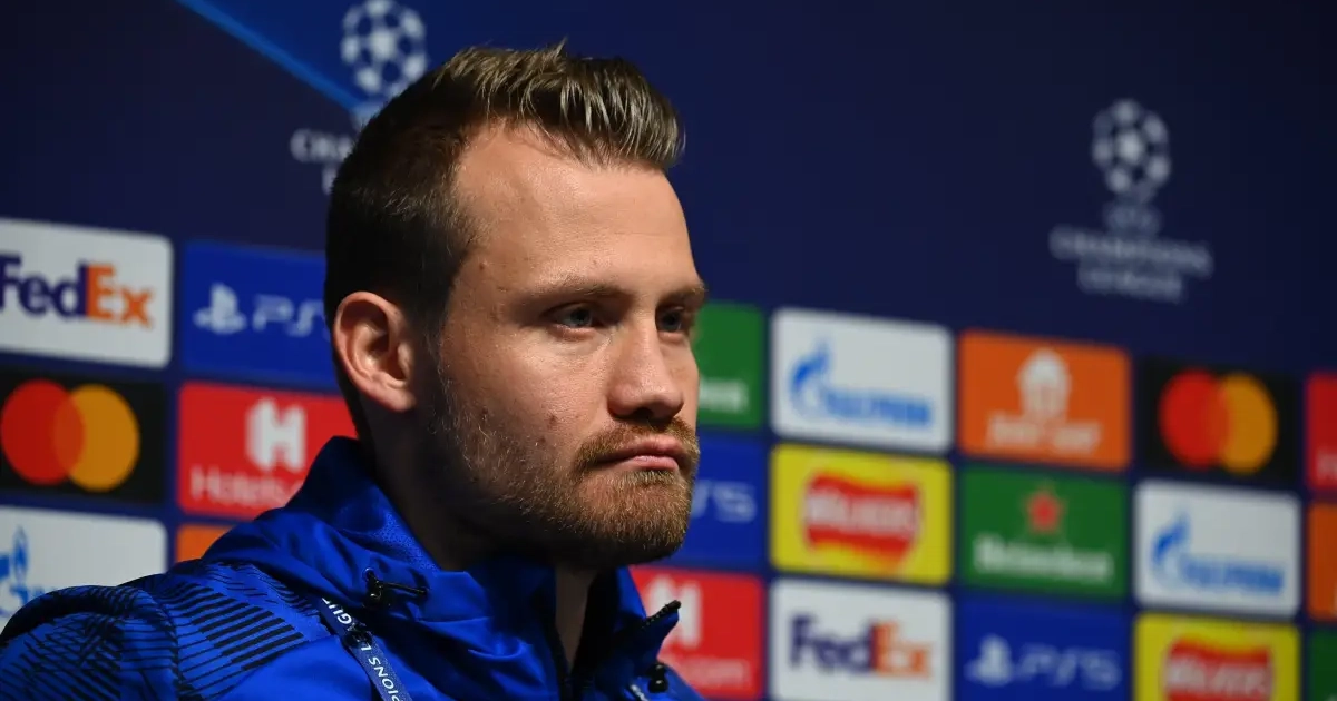 Simon Mignolet kwam op dinsdag praten op de persconferentie in Manchester in aanloop naar het duel tegen Manchester City.