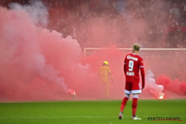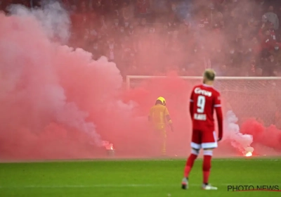 Ref Nicolas Laforge riep de spelers naar binnen en legde de wedstrijd voor een tiental minuten stil. Toen de spelers naar buiten kwamen om het spel te hervatten, werden er nog enkele vuurpijlen in de grote rechthoek van Arnaud Bodart gegooid.