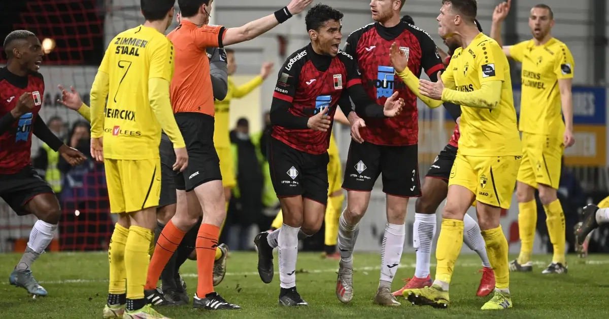 Jens Teunckens leek de deviatie van Kenneth Schuermans ruim voor de doellijn te stoppen, maar scheidsrechter Brent Staessens kende RWDM een doelpunt toe. In 1B is er geen VAR om dit soort fases te checken. De ontsteltenis bij Lierse Kempenzonen, dat in blessuretijd nog twee goals moest slikken en zo met 3-1 moest afdruipen, was hoe dan ook immens.