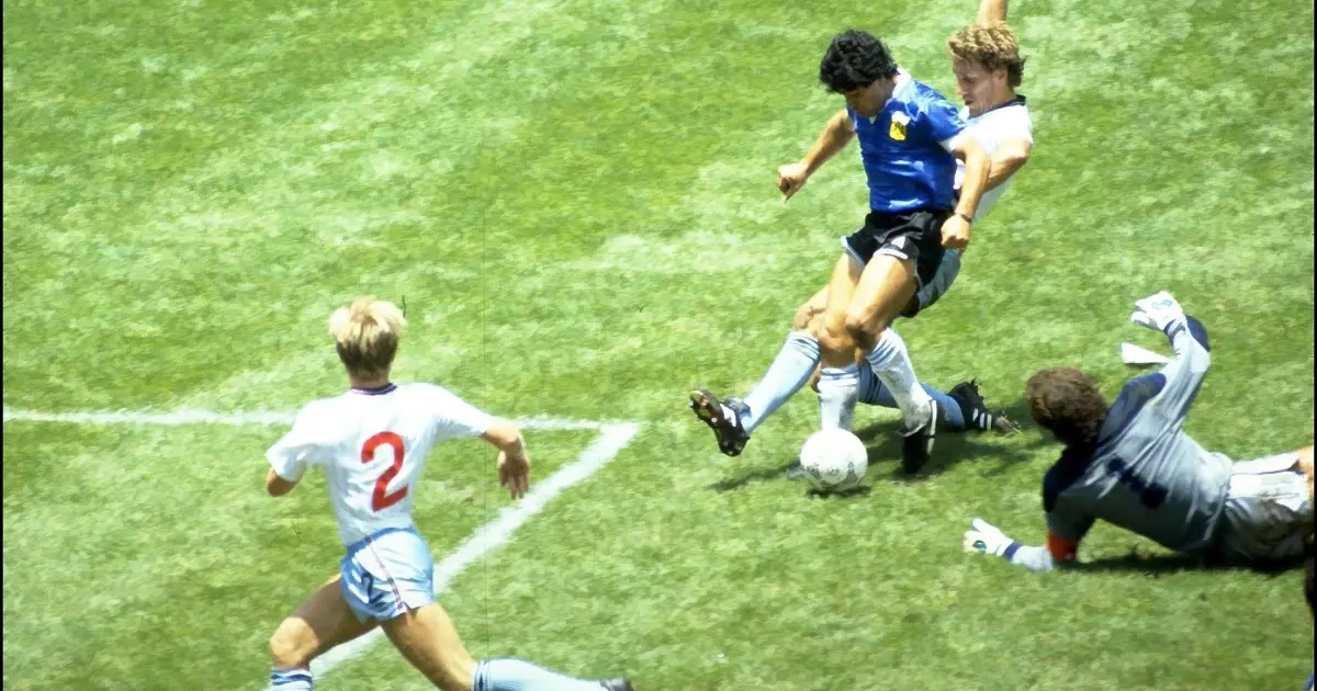 Diego Maradona nam doelman Peter Shilton en de scheidsrechter te grazen met de Hand van God. Minuten later maakte hij dat goed met een onnavolbare solo. Sotheby's zal weldra het shirt van Diego Maradona onder de hamer laten gaan. Dalma, de dochter van Maradona, laat echter weten dat het niet om het echte shirt gaat.