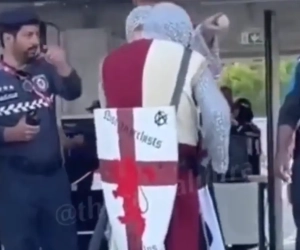 Een paar fans hadden zich verkleed als kruisvaarders. In het Midden-Oosten lijkt dat nu niet meteen het beste idee, gezien ze de geschiedenis. En ze zijn er al gevoelig voor alles wat niet in hun cultuur en religie past. De Engelse fans kregen een hele meute achter zich en werden al snel tegengehouden door de lokale ordehandhavers.