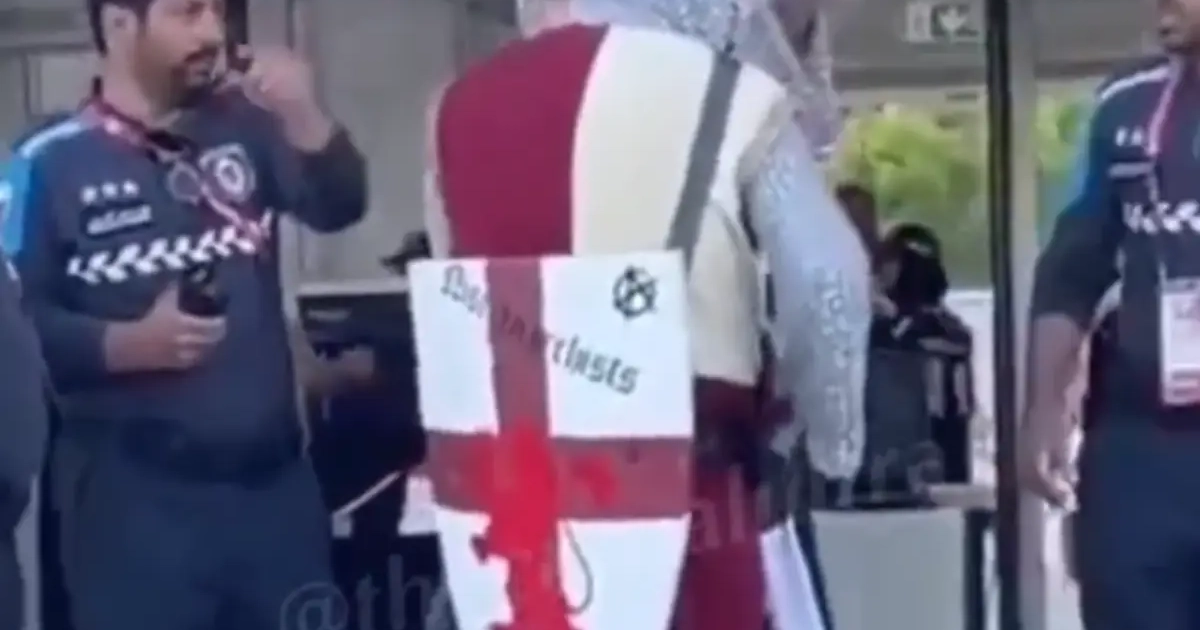 Engelse fans hebben de reputatie van wel eens origineel uit de hoek te willen komen bij voetbalmatchen. Ook in Qatar probeerden een paar supporters het, maar hun outfit zorgde wel voor wat commotie.