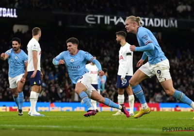 City deed dat in de Premier League en met Kevin De Bruyne, nadat die wegens persoonlijke redenen niet alle trainingen meedeed, op de bank. City volgde al op acht punten van Arsenal en door twee treffers van Tottenham op slag van rust zag het er maar somber uit voor de ploeg uit Manchester. Met 3 goals in 12 minuten (Alvarez, Haaland, Mahrez) pakte de thuisploeg uit met een fenomenale comeback. Mahrez maakte ook nog de 4-2.