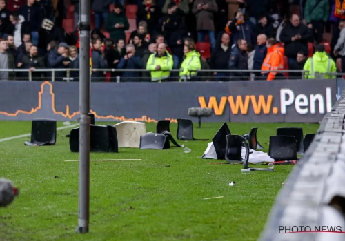 "Er werd eerst vuurwerk gegooid, toen gebeurde er steeds meer. Het werd niet rustig. Daarom zijn we naar binnen gegaan, zodat de veiligheidsorganisatie hopelijk orde op zaken kan stellen", vertelt ref Oostrom. "Dat zijn de afspraken. Het was echt onrustig op die tribune. Dan kies ik voor de veiligheid van spelers en staf, dan gaan we naar binnen. Ik hoop dat we zo weer snel verder kunnen, maar dat is ook afhankelijk van andere mensen."
