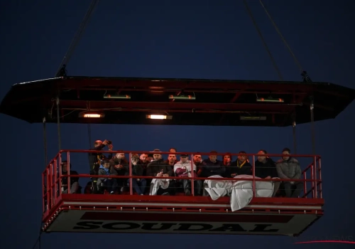 In samenwerking met sponsor Soudal werden namelijk 24 supporters zo'n 24 meter naar boven gehesen met een kraan. "Uniek in België", klinkt het bij Westerlo.