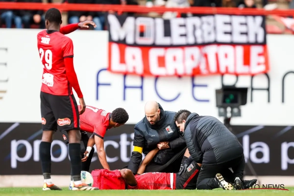 De eerste wedstrijd van de dag in het Edmond Machtensstadion heeft voor opschudding gezorgd. Een speler van de thuisploeg kijkt mogelijk tegen een revalidatie aan.