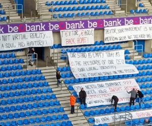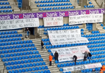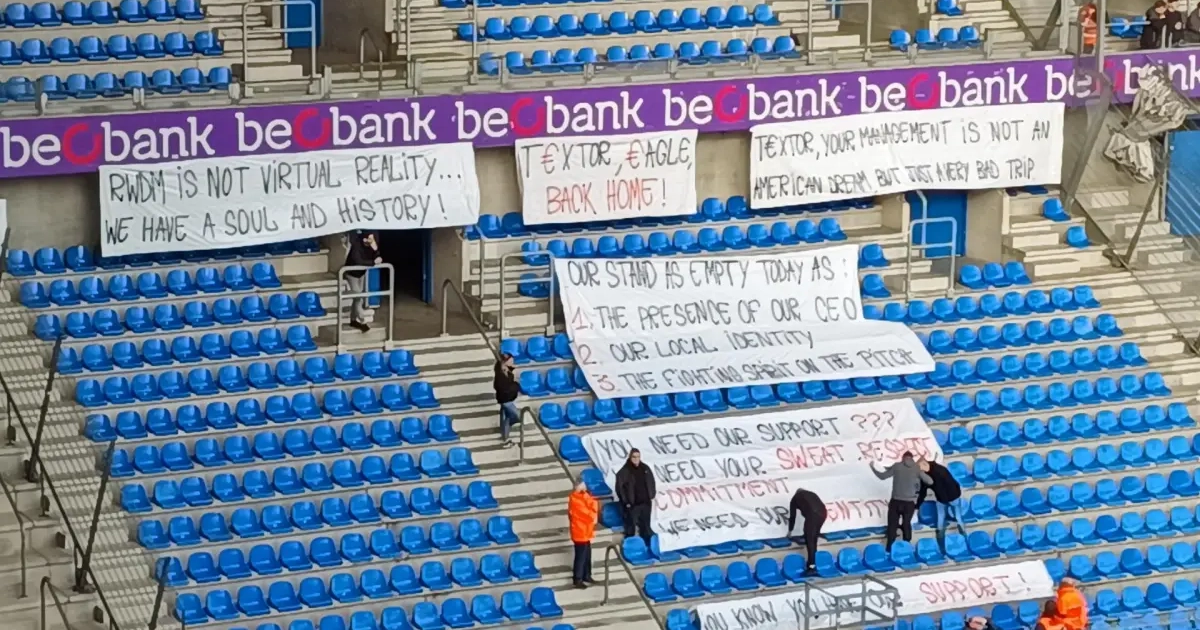 De onvrede bij de supporters van RWDM is nog lang niet geblutst. De supportersclubs boycotten de match tegen Genk. Maar dat wil niet zeggen dat ze geen signaal meer wilden geven. Voor de match plaatsten ze heel wat spandoeken in de lege bezoekerstribune.