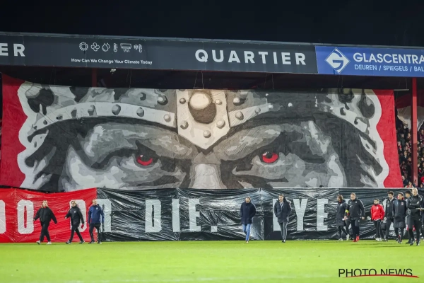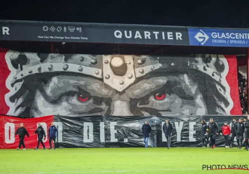 De supporters van KV Kortrijk zitten nog lang niet in zak en as. Ook tegen RWDM waren ze met meer dan 6000, voor de wedstrijd kwamen ze al met een knappe tifo die de nodige indruk maakte. "Do or die. Eyes on the target", klonk het.