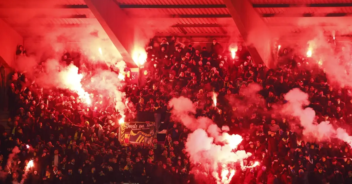 Union-Fenerbahçe stond bij affluiten al in vuur en vlam. Na het eerste fluitsignaal kwam er een regen van vuurwerk neergevallen op het veld vanuit het bezoekende vak.