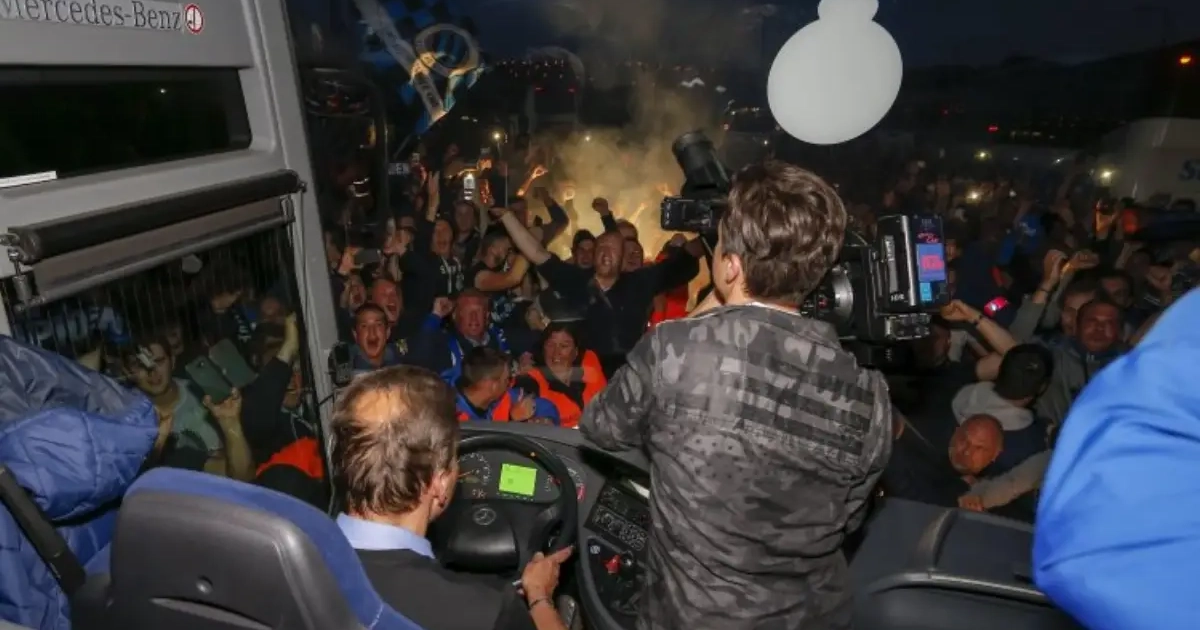 Hun plan begon net buiten het Dudenpark. Met een flinke portie lef en een trainingspak in blauw-zwarte kleuren slopen ze uit de bosjes en wandelden zonder verpinken richting de bus, terwijl de politie toekeek.