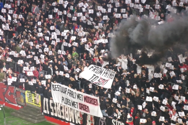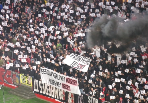 Eén van de spandoeken van de harde kern deed ook uitschijnen dat het aan deze prijzen niet meer mogelijk is dat het "fan zijn" overgedragen wordt van de ene generatie van een gezin op de volgende. Ook de spelers blijven niet helemaal buiten schot. "Bestuur faalt met woorden, ploeg met daden", stond op een ander spandoek te lezen.