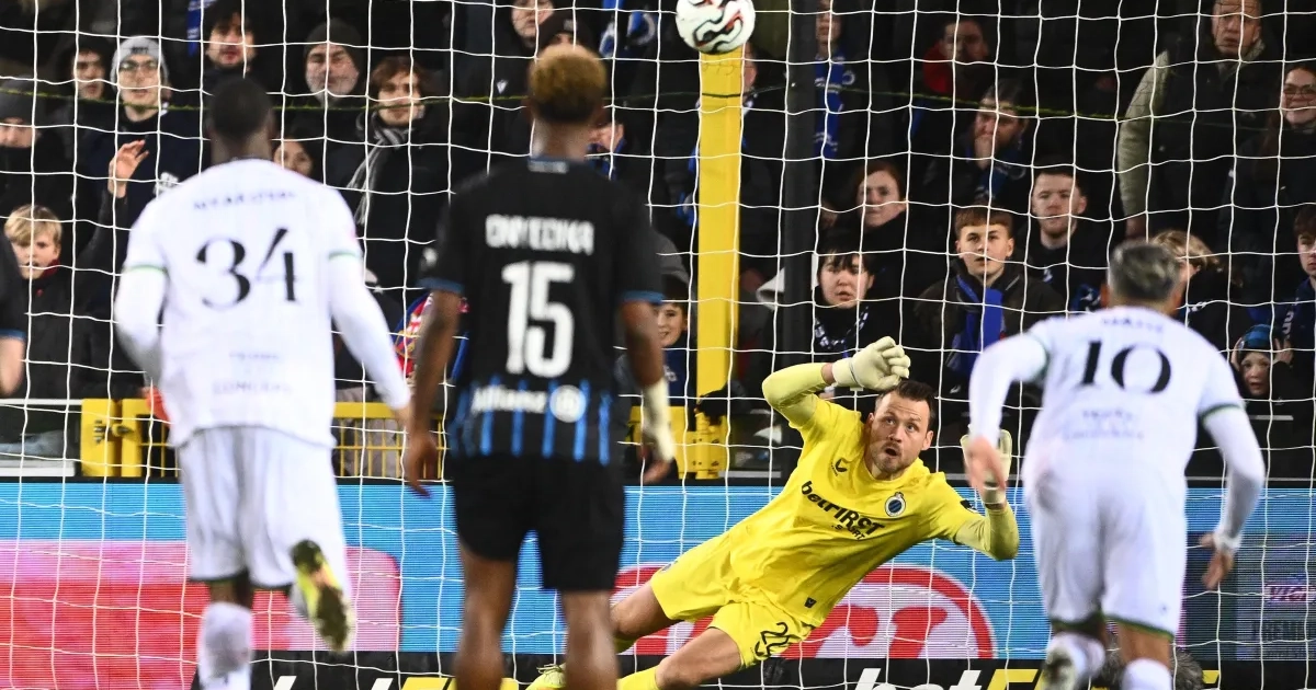 Siebe Schrijvers nam de elfmeter en stond oog in oog met doelman Mignolet. Het leek het moment om Leuven weer in de wedstrijd te brengen.
