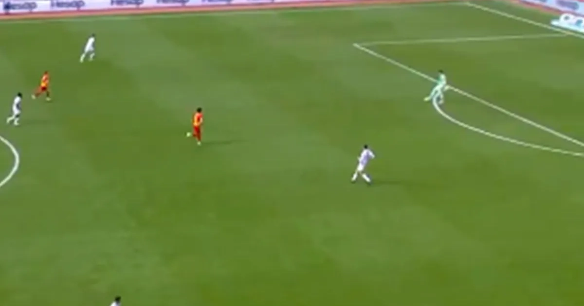 In de 66e minuut trapte hij een lange uittrap, op enkele meters van zijn eigen zestien. De bal stuiterde vlak bij de rand van het strafschopgebied en verschalkte Bilal Bayazıt. Een totaal onwaarschijnlijke fase die je in het voetbal zelden ziet.